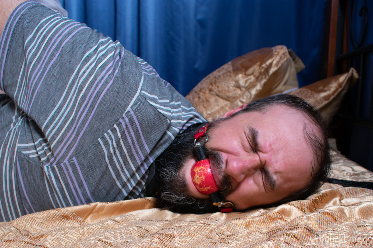 Chica Morena Trabaja Sobre Las Suelas De Un Hombre Restringido Y Amordazado - Información de la Galería