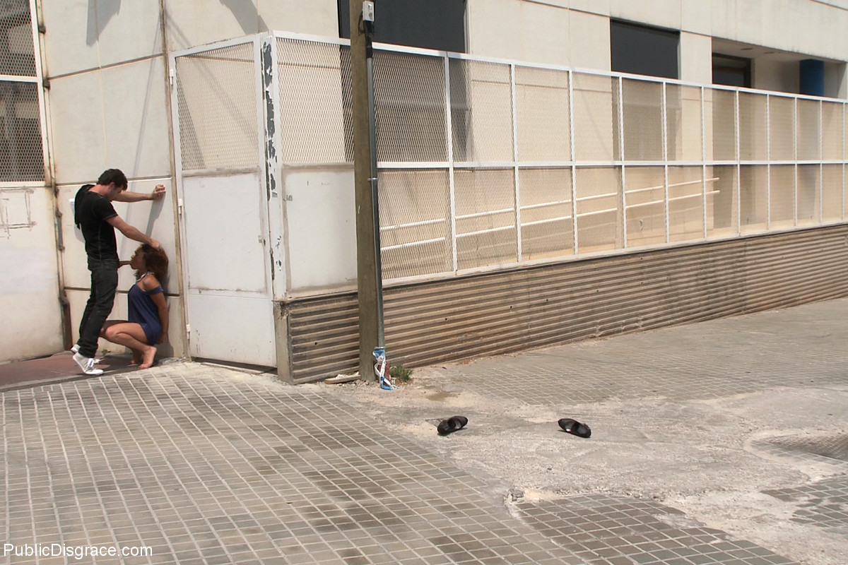 La MILF española Sara May sufre una deshonra BDSM pública por James Deen — bondage al aire libre, follada facial, mamada con upskirt, latina peluda expuesta en galería fetichista.