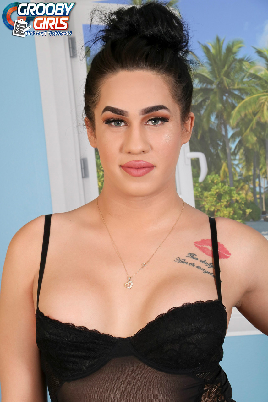 Vanity Monroe luce su gran polla MILF sin cortar en candentes fotos de sexo transexual de Grooby Girls; mira a esta impresionante shemale ponerse bien dura y lista para la acción.