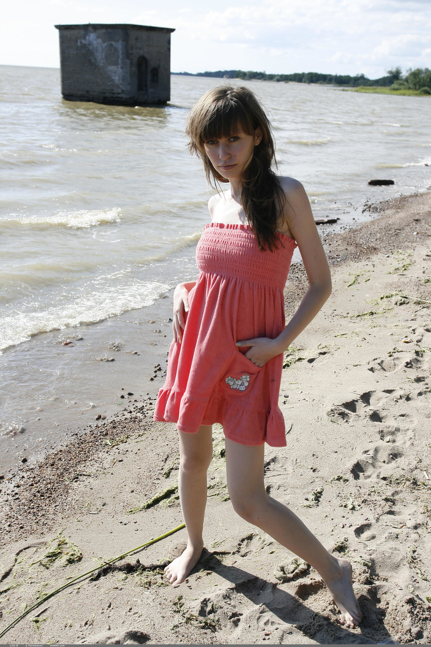 Teen Lilly B strips her mini skirt outdoors, flashing shaved pussy upskirt, tiny tits and tight asshole in naked Domai gallery.