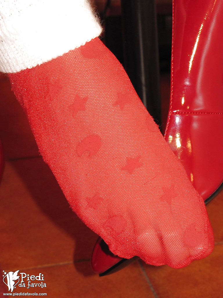 Sexy Blonde Foot Fetish In Red Pantyhose - Gallery Information