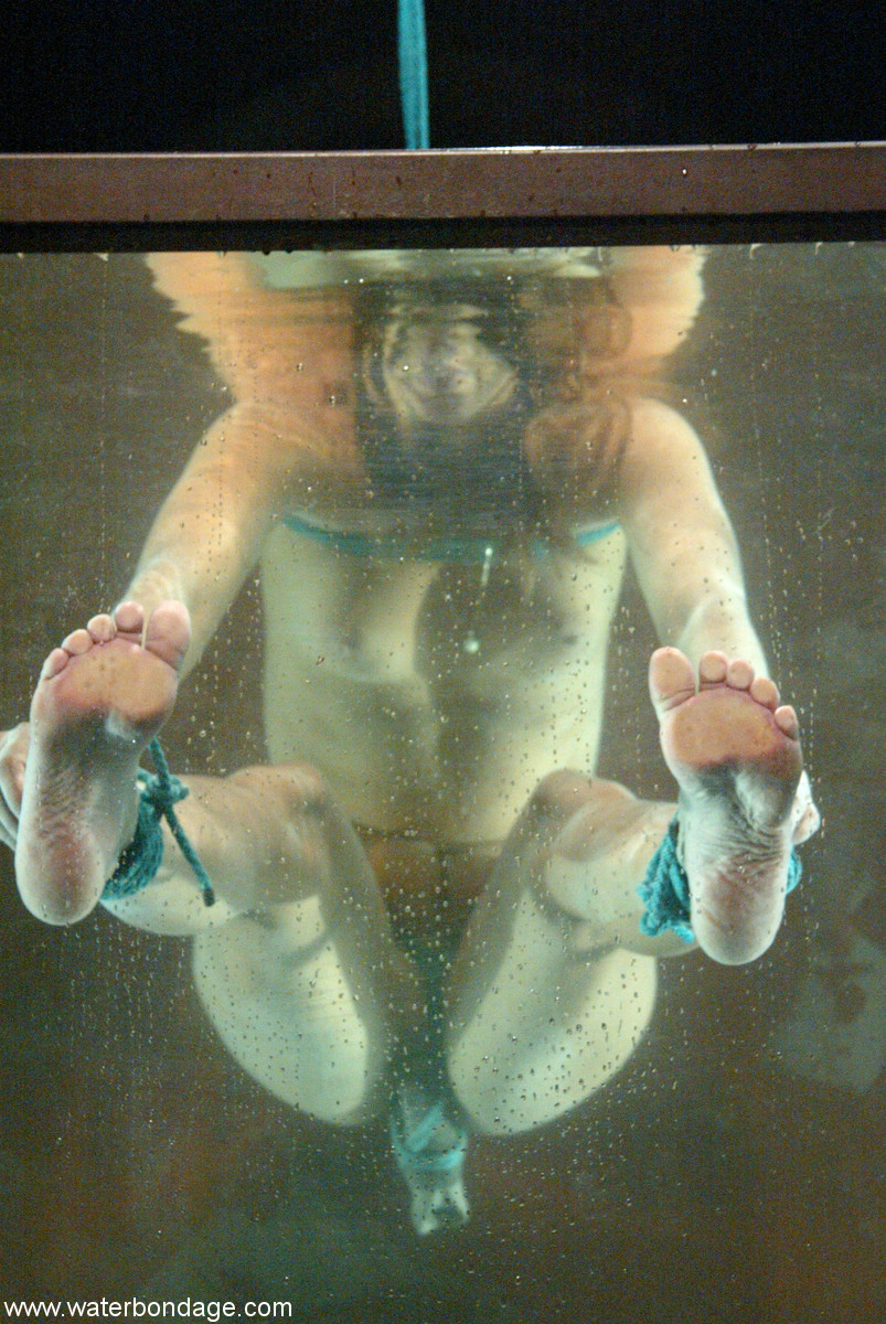 Latina MILF Isis Love submits to intense water bondage, submerged and teased with huge dildos, her puffy nipples and bound feet on full wet display in kinky close-up fetish gallery.