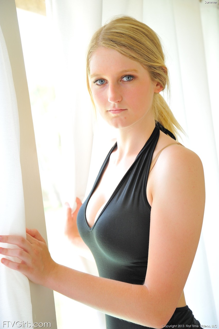 Adorable tall blonde Summer flaunts natural tits, tight holes and sporty body in solo glamour shoot before first-time toy play.