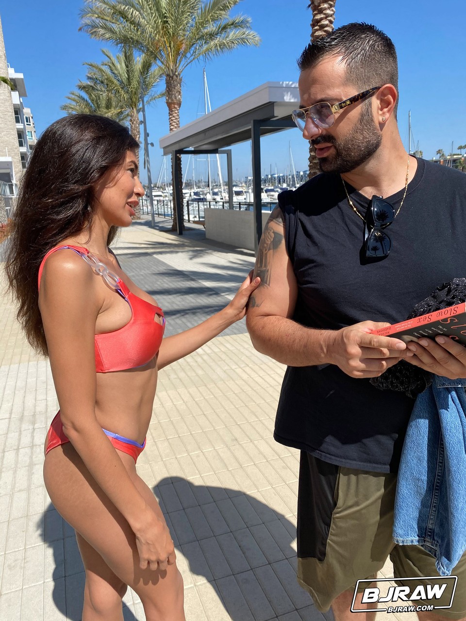 La brune Heather Vahn exhibe ses courbes fines, ses gros seins naturels tombants et son cul en bikini dehors avant une éjaculation faciale latina torride.