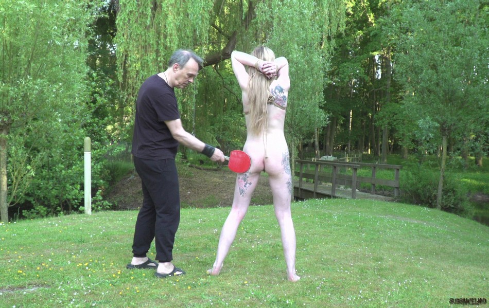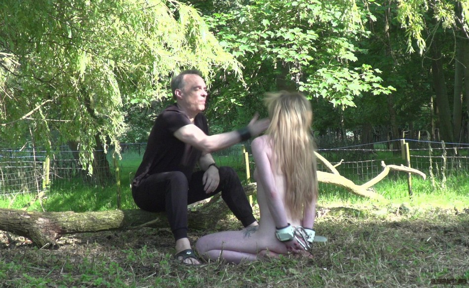 Une blonde humiliée se soumet à une domination BDSM en plein air, avec des liens et une fellation profonde après une fessée. Une charmante sous-femme tatouée reçoit du sperme dans la bouche ouverte, culminant dans une domination de jeune rough.