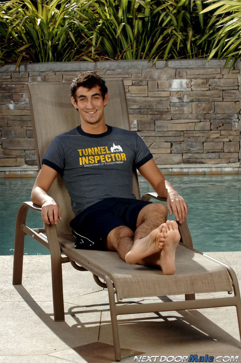 Regardez le beau gosse poilu Jeremy Fox se déshabiller au bord de la piscine, exhibant sa grosse bite dans un show solo gay torride en plein air.