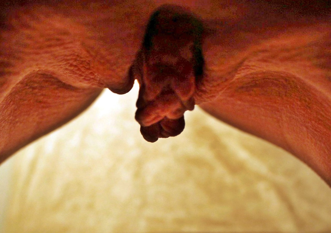 Prises de vues extrêmement rapprochées de la vulve d'une grand-mère décomplexée, mettant en valeur de grandes lèvres et une chatte humide en gros plan en extérieur dans un éclairage amateur de chatte.