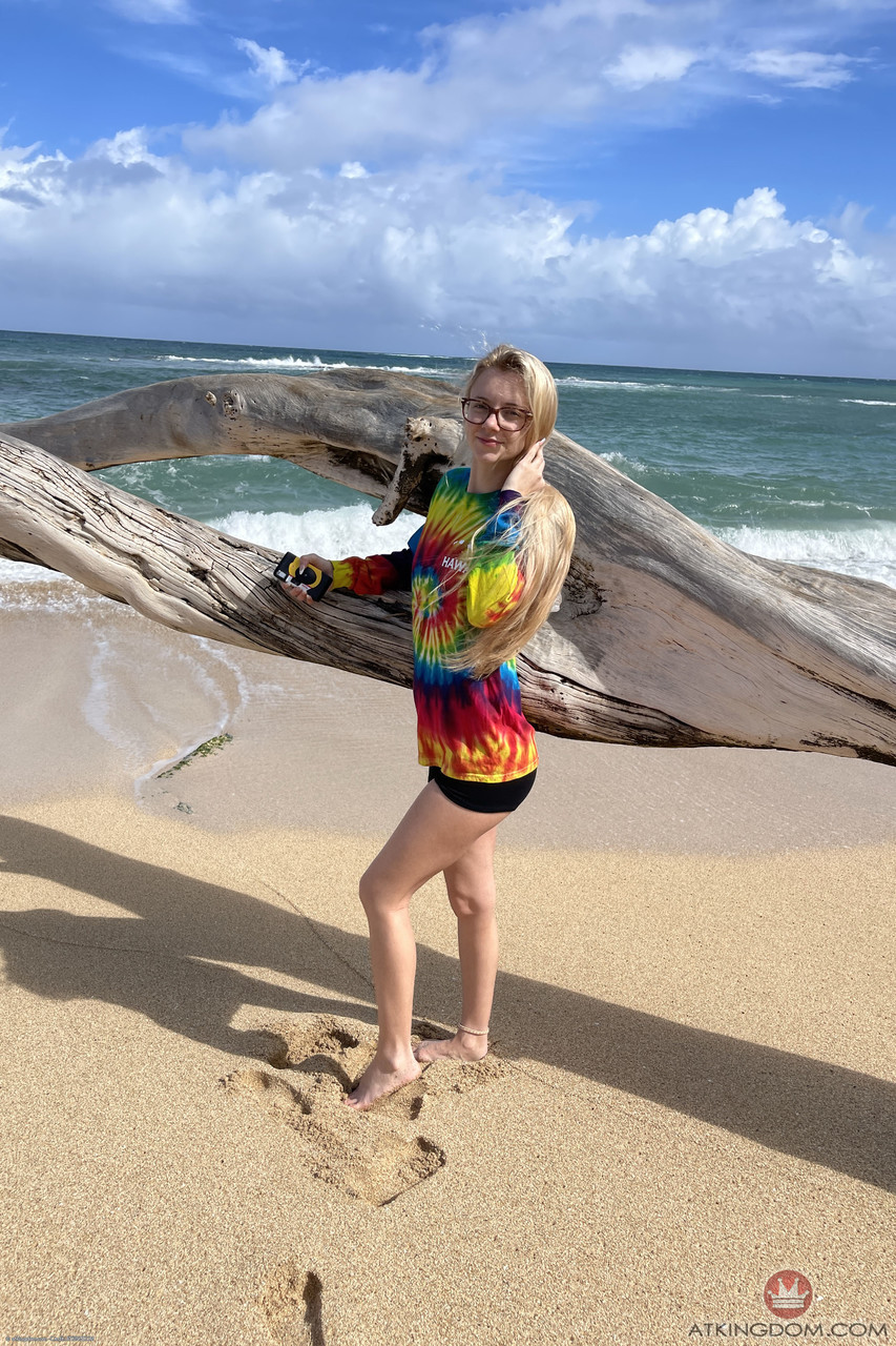 Jeune Blonde Adolescente Riley Star Monte Pussy Taillée De Près Sur Le Lit - Informations sur la Galerie
