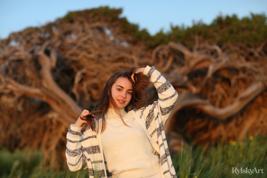 Sofy Bee, charmante modèle PAWG adolescente, expose ses petits seins naturels et sa belle chatte poilue à l'extérieur en gros plan, dans une séance de tease naturiste.