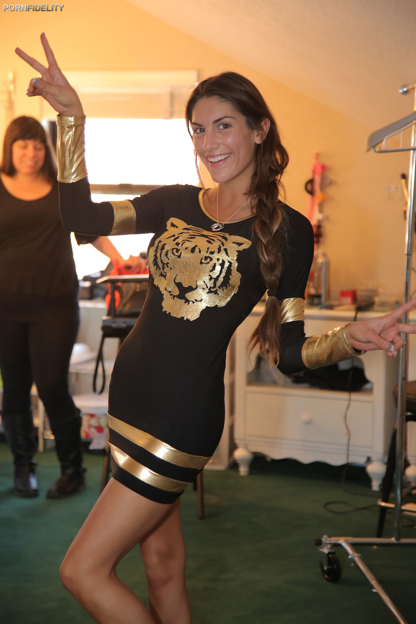 Regardez la pornstar canadienne August Ames se déshabiller entièrement en changeant de tenues, exhibant ses gros seins naturels en forme de banane, ses tétons gonflés et pointus, ses longues jambes et sa beauté brune d'adolescente mignonne dans cette galerie exclusive.