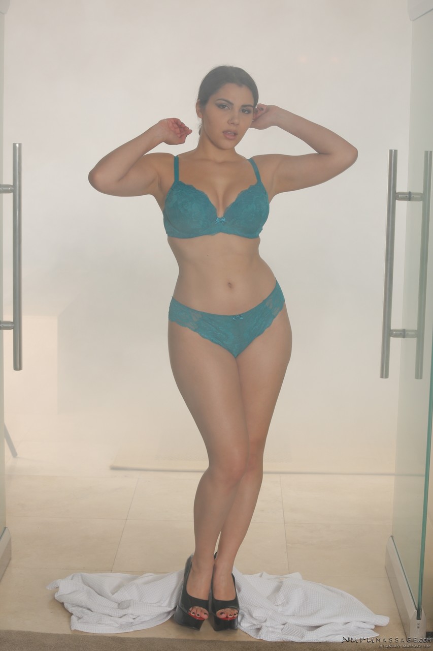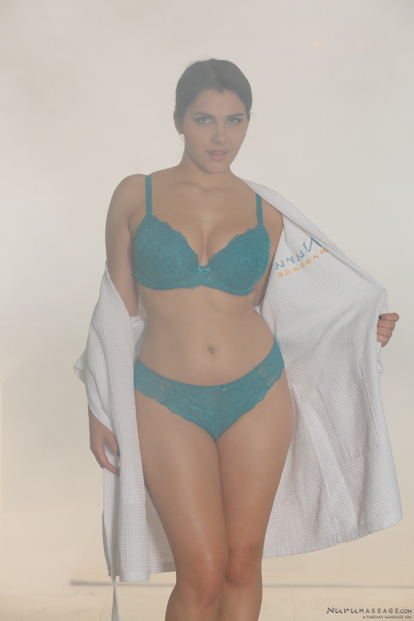Regardez la brunette italienne Valentina Nappi se déshabiller pendant un massage érotique, révélant ses gros seins naturels et son cul rebondi en HD sensuel.