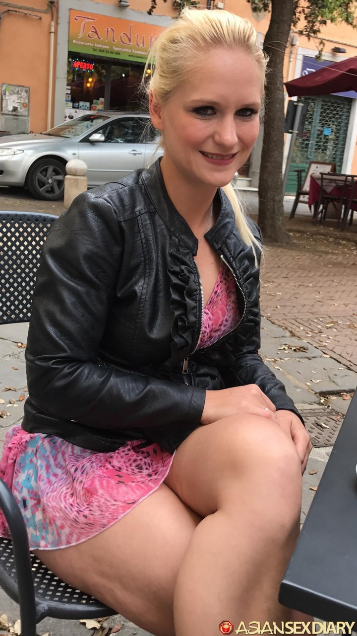 POV doggystyle avec la MILF amateur salope Rossella se termine par un facial, blonde PAWG en cuir prend par derrière, grandes lèvres naturelles, jambes croisées, vrai cumshot.