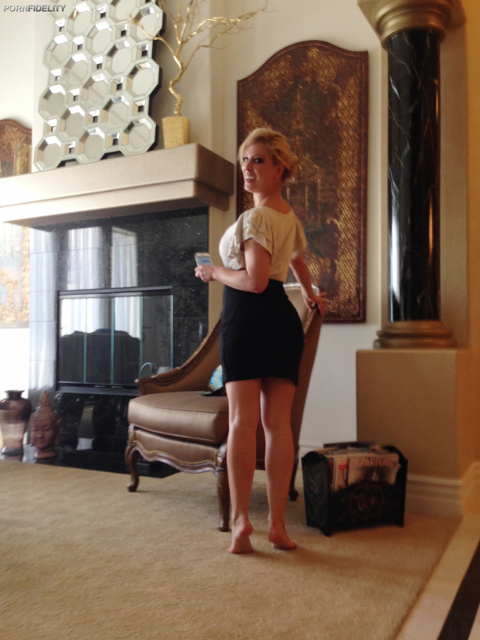 Curvy Blonde Pornstar Cherie Deville Shows Ass And Fake Tits