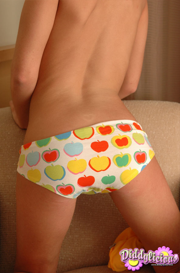 Cute redhead Diddylicious teases in cotton panties, showing off her skinny teen body and tight ass before slipping her fingers inside.