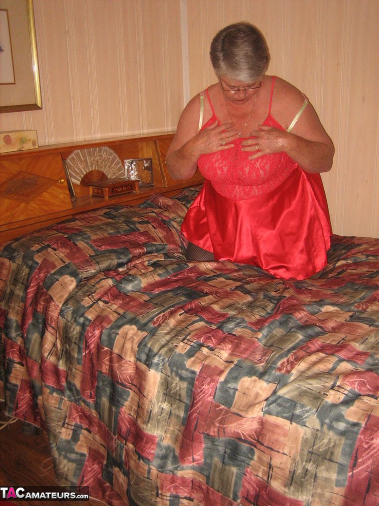 Fat Granny Girdle Goddess Strips To Hosiery And Pets Pussy On Bed - Gallery Information