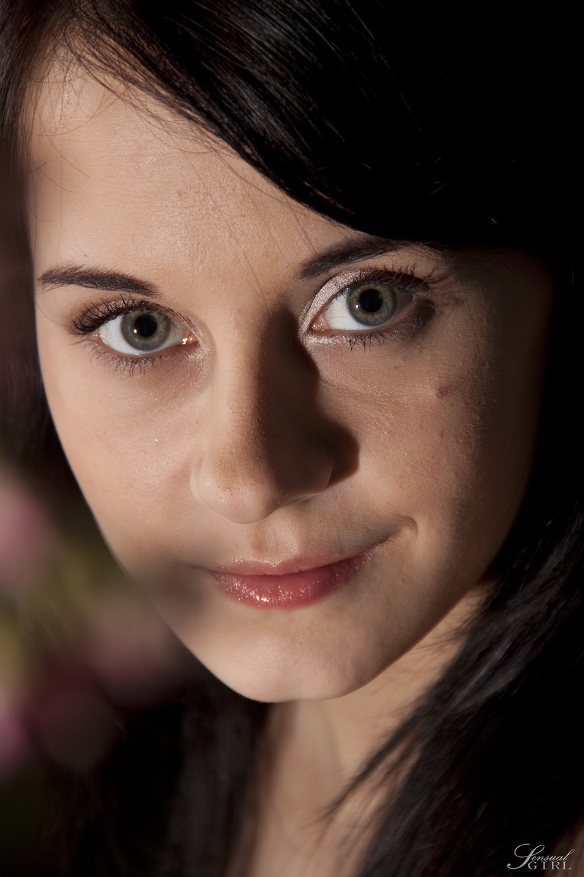 Glamorous skinny babe Leda strips lingerie, spreading nude by statue, flaunting tiny tits, tight pussy and beautiful face in solo glamour shoot.