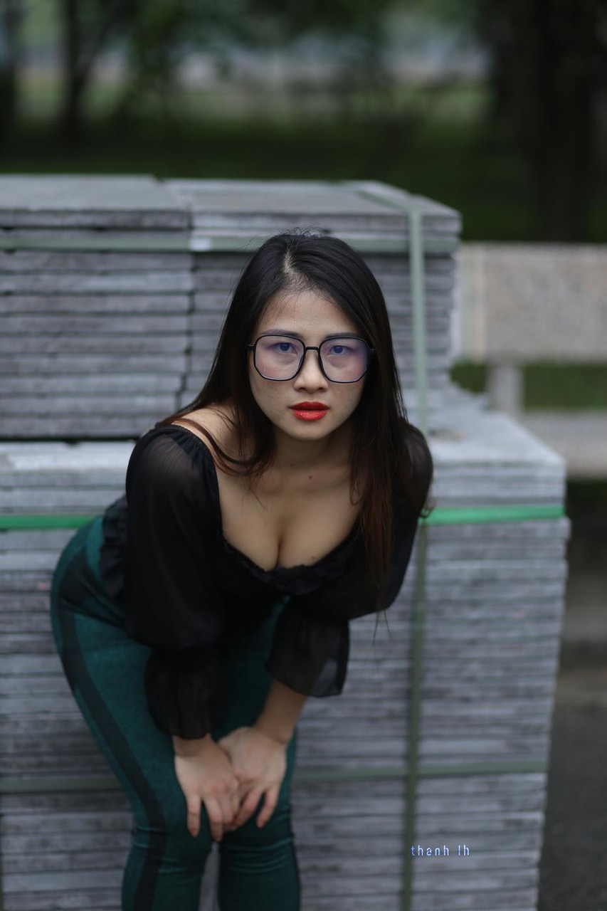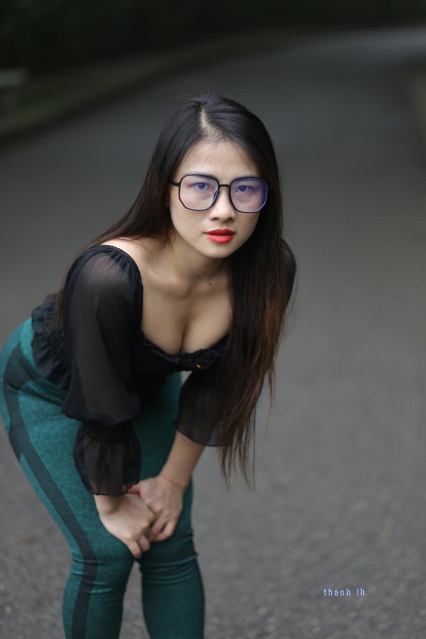 Home Asian Pretty Asian Model With Glasses Elena Poses In Her Hot Blouse And Pants