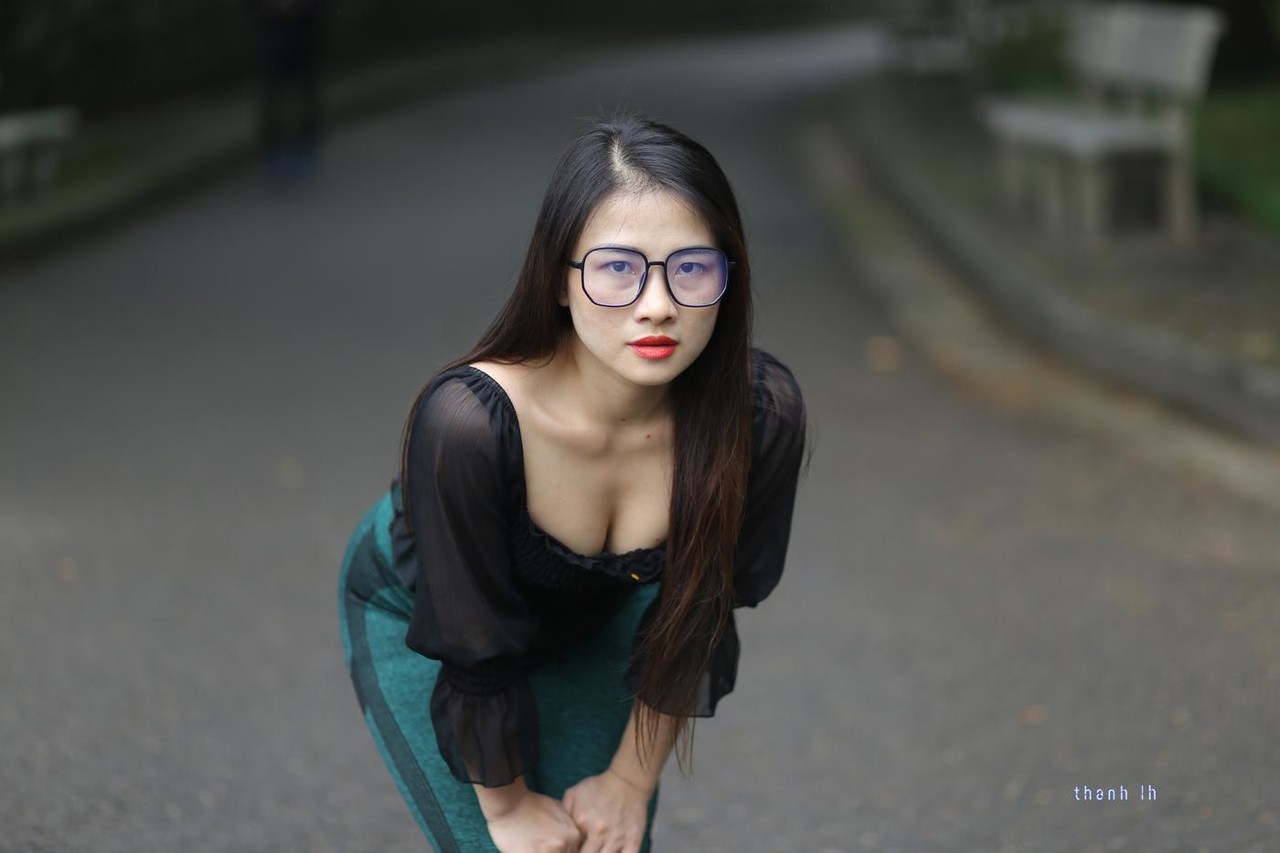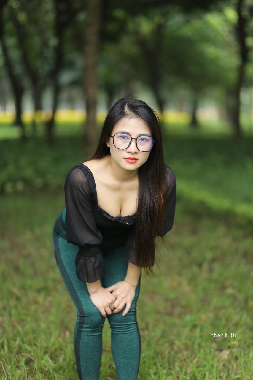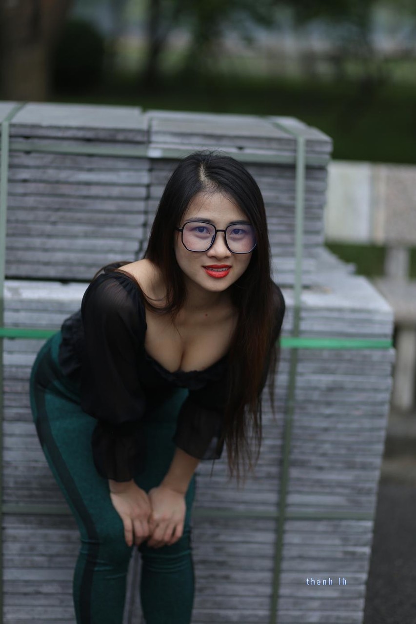 Asian Amateur Babe Beautiful Big Tits Brunette Clothed Glasses Outdoor Solo