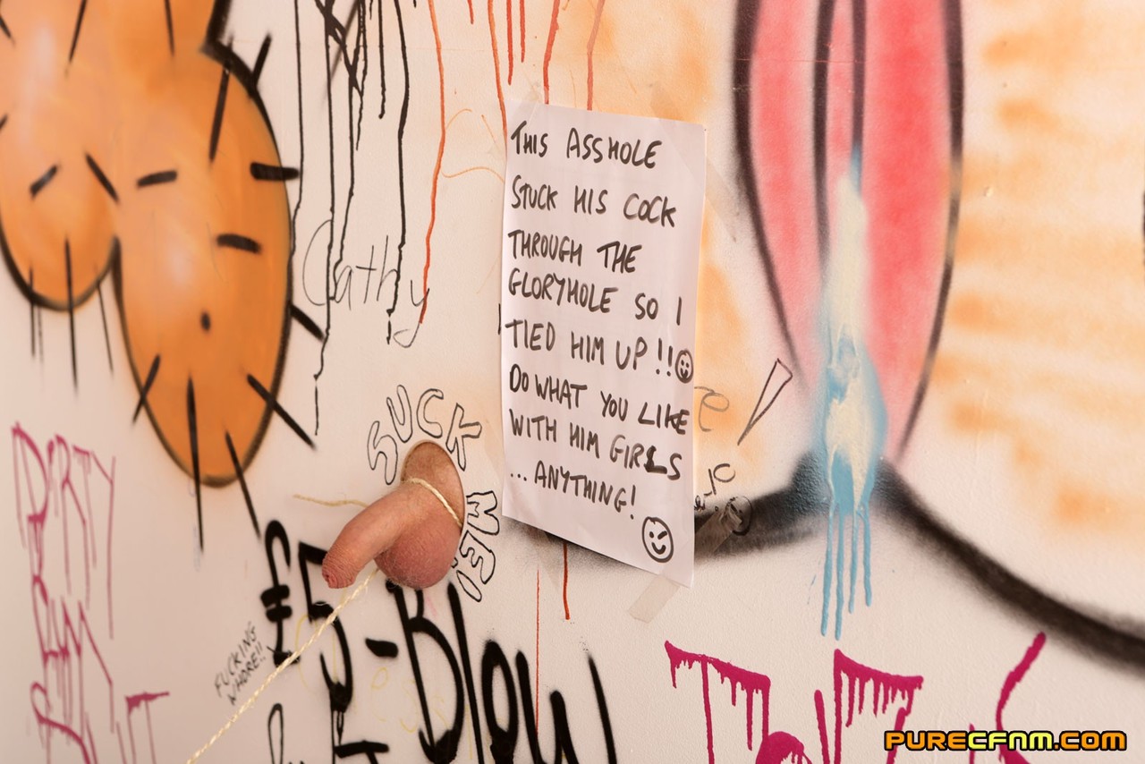 Clothed Women Sucking Cocks Through Bathroom Gloryhole