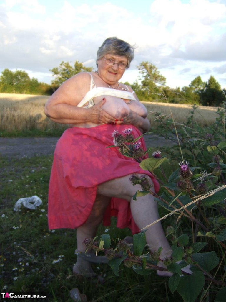 Obese Oma Grandma Libby Exposes Her Huge Ass In Field By Rural Road - Gallery Information