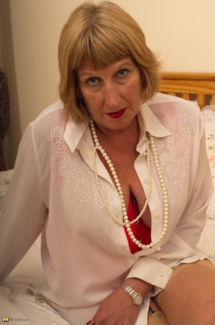 Shy Granny Removes Sunday Best To Show Garter Belt And Ass