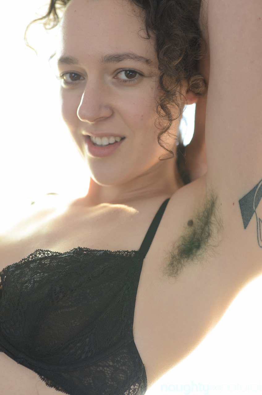 Pale amateur Lilith Luxe teases in sheer lingerie, flaunting her full hairy bush, curly brunette curls, natural tits and furry armpits before spreading wide for intimate close-ups.