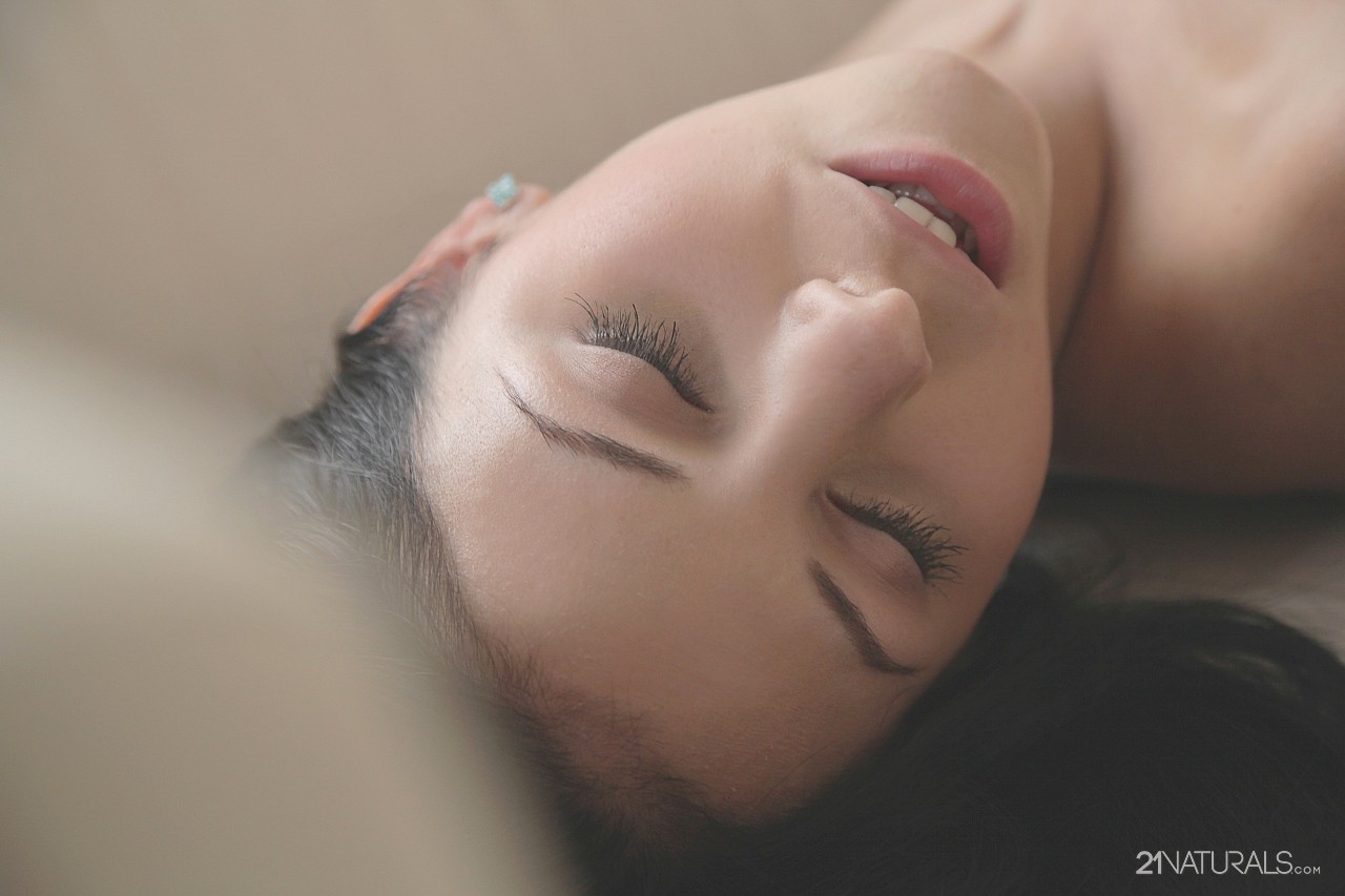 युवा सांवली लड़की बिस्तर पर सेक्स के बाद अपने टाइट चूचों पर वीर्य गिरने देती है