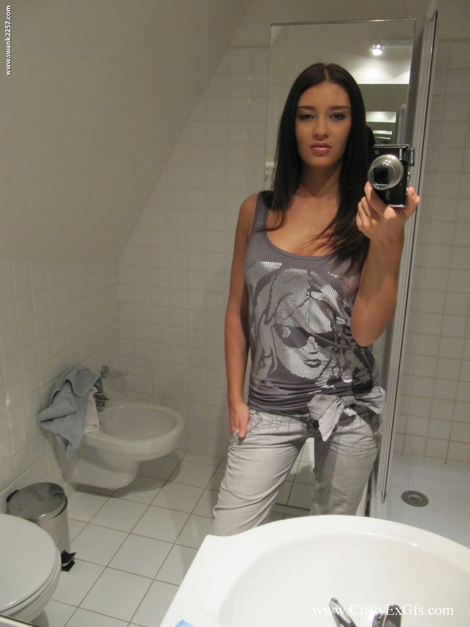 एमेच्यूर लड़की बाथरूम में आइने के सामने नंगी होकर सेल्फी लेती है - गैलरी जानकारी