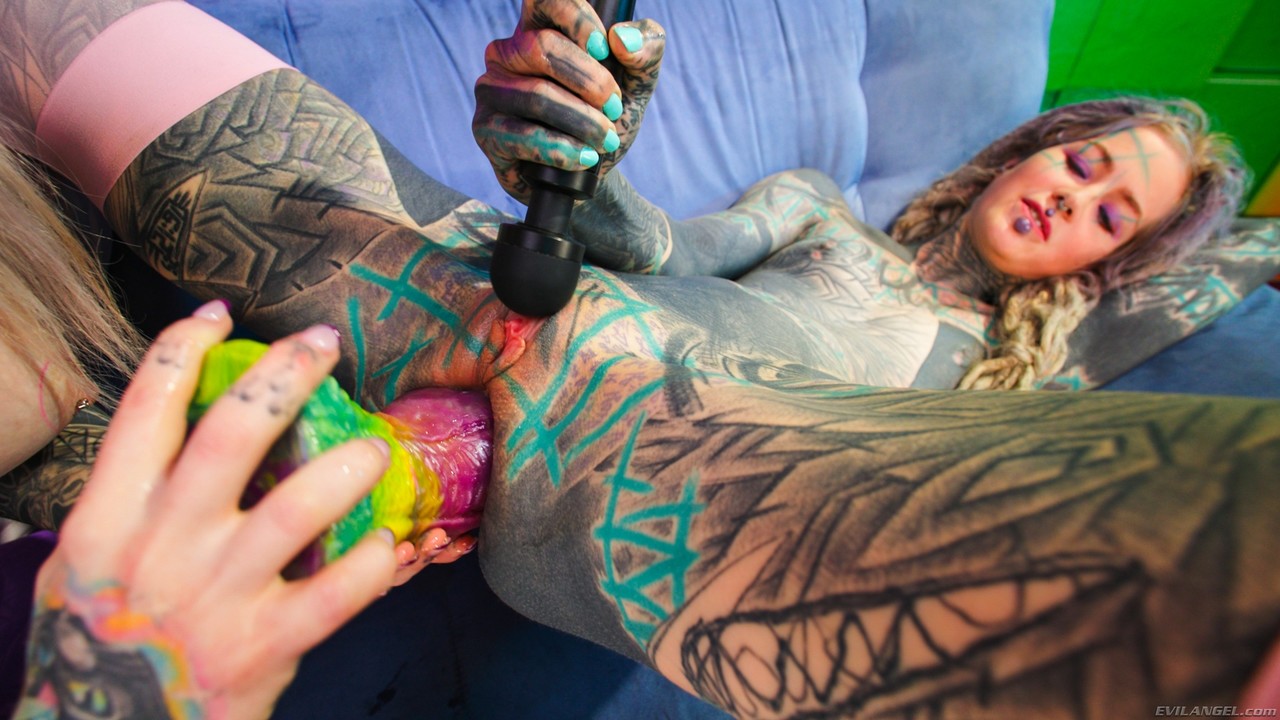 टैटू वाली समलैंगिक महिलाएं अनुस्काट्ज़ और केली पैंथर योनियों और गुदाओं में प्रवेश करती हैं - फ़ोटो 2 / 15