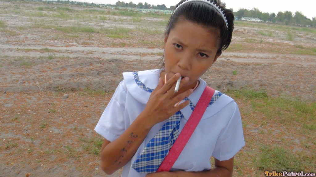 फिलिपिनो स्कूली लड़की धूम्रपान करने वाली सैली अपने मीठे किशोर स्तन दिखाती है - गैलरी जानकारी