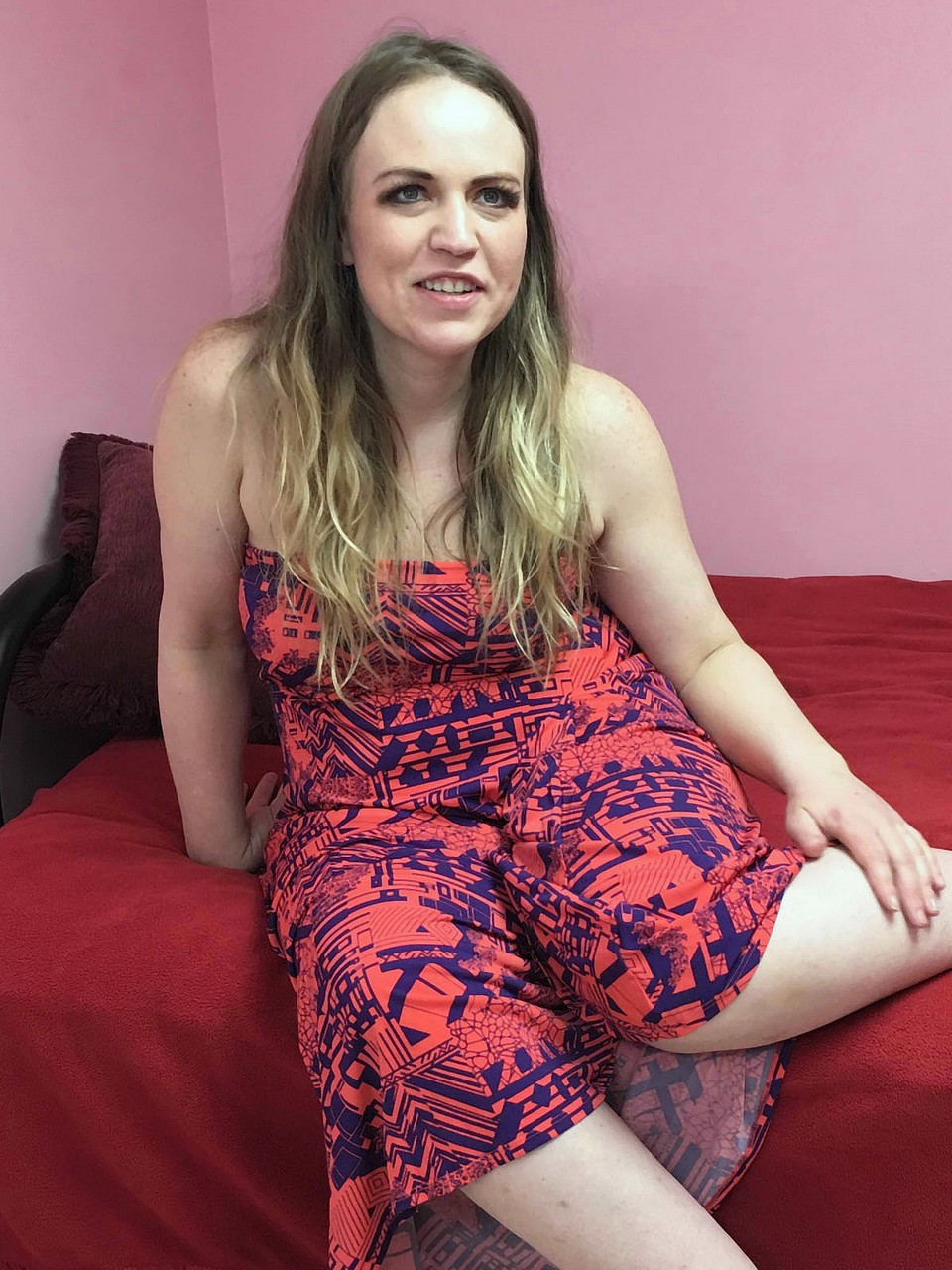 शरारती BbW जून केली अपने बड़े स्तनों और चubby शरीर को नायलॉन में दिखाती है