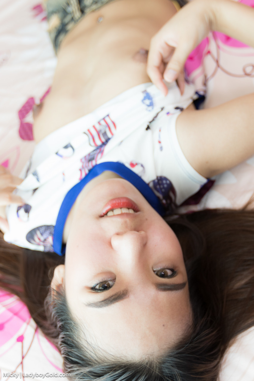 छोटी थाई शेमेल मिकी छोटी लेडीबॉय डिक का प्रदर्शन करती है, अंडरस्किर्ट टीज़, बिस्तर पर तंग गांड फैलाती है—छोटे स्तन, प्यारे ब्रेसिज़, कच्चा एशियाई ट्रांस सोलो。