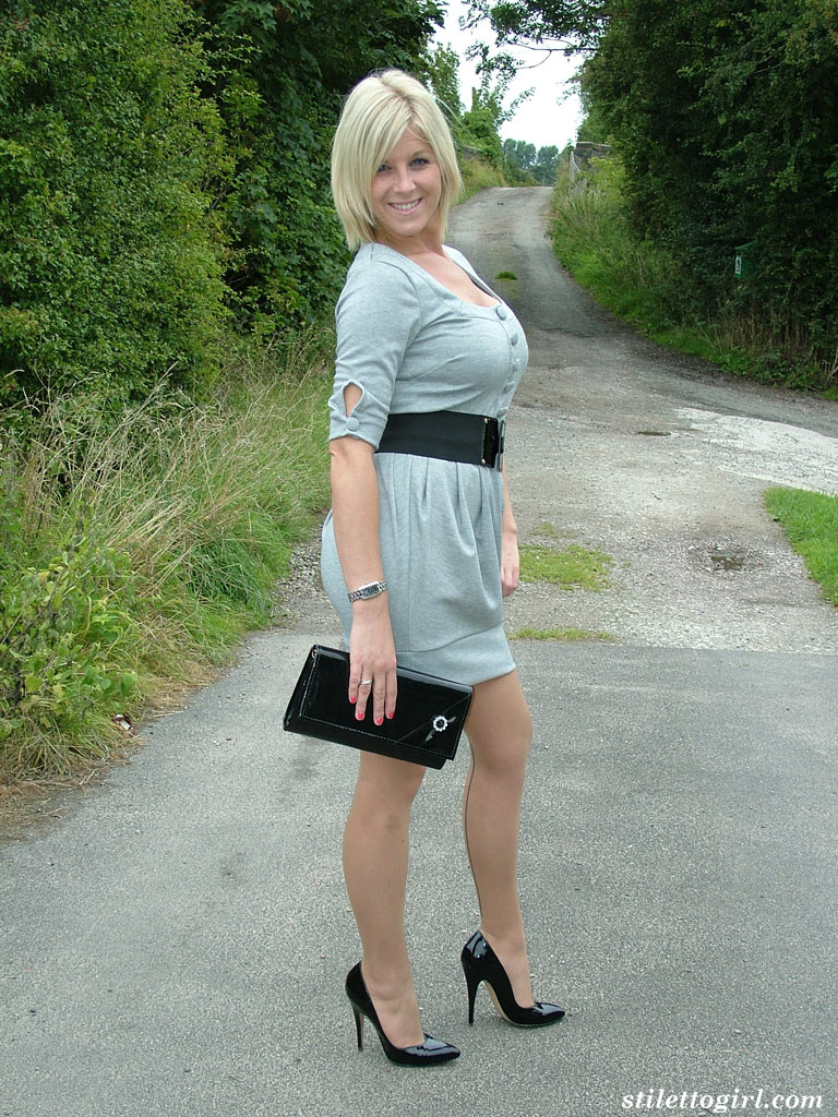 गोरी महिला ड्रेस और नायलॉन में चमकदार पंपों के साथ - गैलरी जानकारी