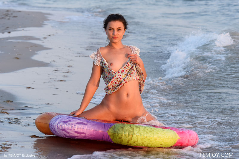 समुद्र तट पर हवाई गद्दे पर पूरी तरह नग्न हो जाती है सांवली किशोरी - गैलरी जानकारी