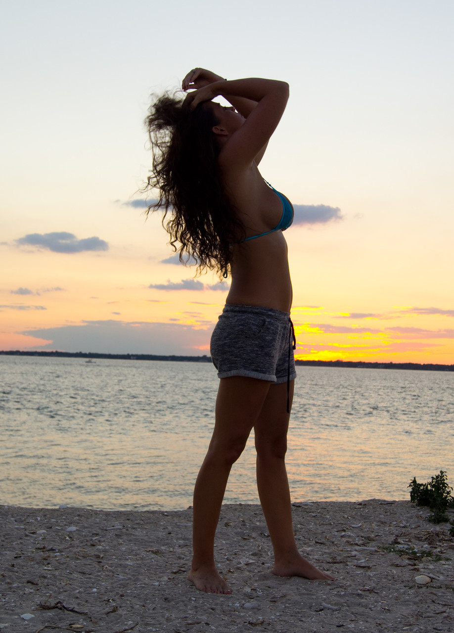 सुंदर भूरी मॉडल जेसिका ओ समुद्र तट पर कातिलाना वक्र दिखाती है - गैलरी जानकारी