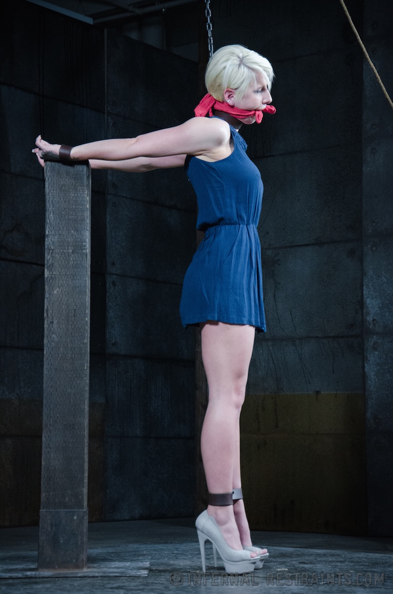 गैग्ड प्लेटिनम ब्लॉन्ड मिल्फ डायलन फीनिक्स बंधे और लार टपकाते हुए, स्कर्ट उठाई हुई, पैरों को चौड़ा किया हुआ - शेव्ड योनि , नंगे पैर, छोटे बाल, बीडीएसएम गर्मी का सटीक बंधन का उत्पीड़न।