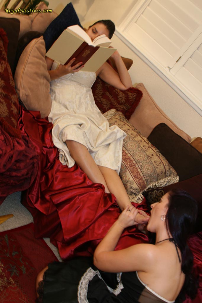प्रभावी महिला समलैंगिक मालकिन ने विनम्र दासी को पढ़ते समय अपने पैर चटवाए - फ़ोटो 4 / 12