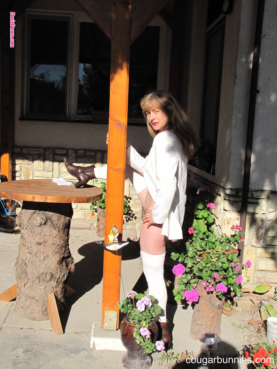 गर्म कूगर डोरिस डॉन बाहर मोज़ा पहने छेड़ रही है, अपनी टाइट गांड और छोटी चूचियाँ एमेच्योर PAWG बनी फैन्स के लिए फैला रही है।