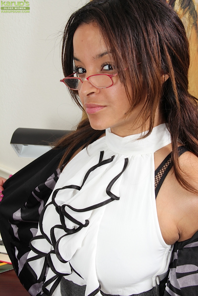 विवियन वुड अपनी पतली टांगें चौड़ी करके सांवली लैटिना रंडी एक्शन लेती है, लिंगरी और स्कर्ट में बड़े छेदे हुए बूब्स फ्लॉन्ट करती है, फिर झुककर MILF गांड छेद टीज़ करती है।