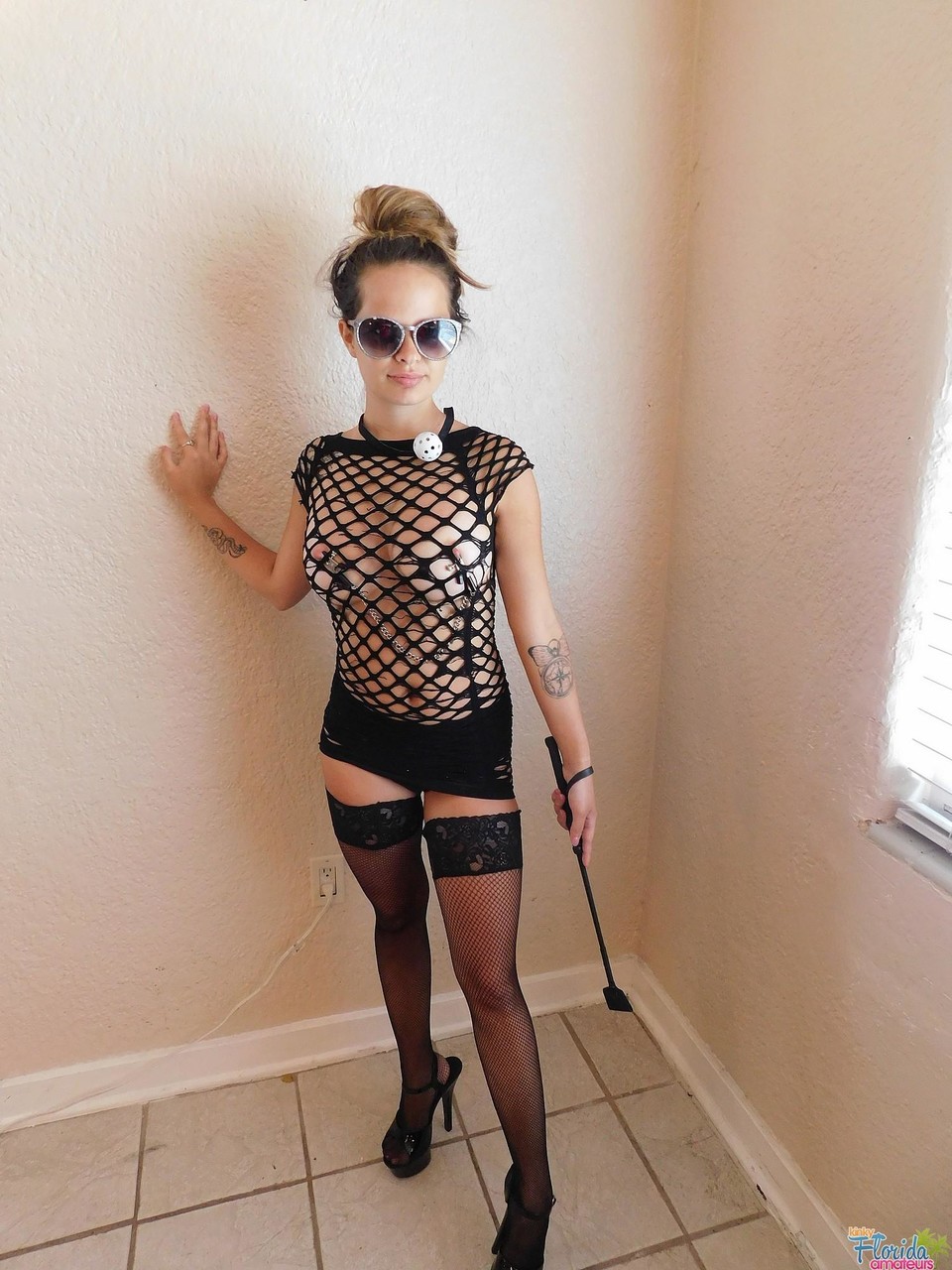 बेकी सी फेटिश परिधान में सोलो एक्शन में अपने बड़े स्तन, निप्पल और वक्र को स्टॉकिंग्स, हाई हील्स और पैंटी में प्रदर्शित करती है।