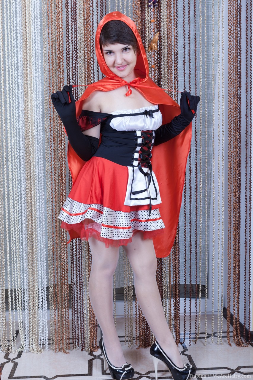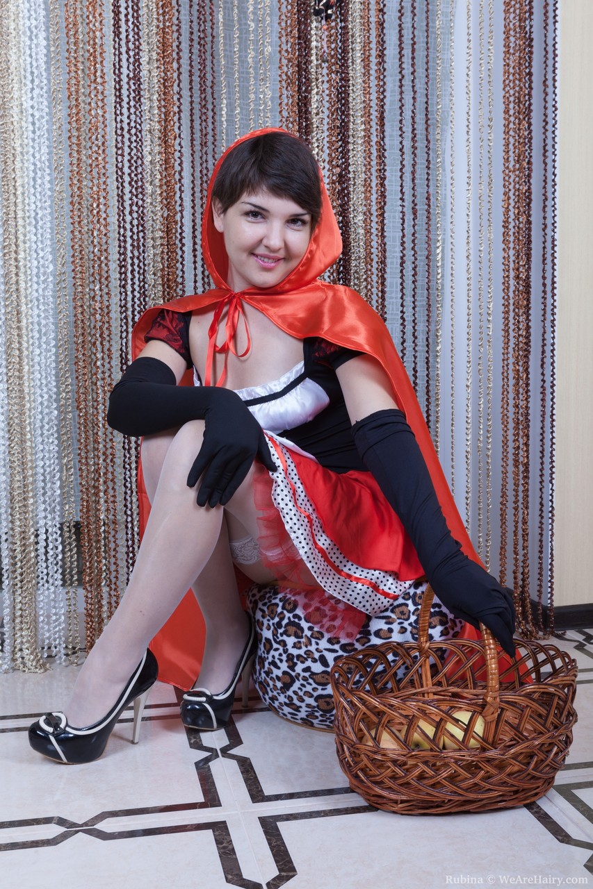 छोटी लाल राइडिंग हुड रुबीना अपने बालों वाले योनि के साथ खिलौने और नग्न हो जाती है