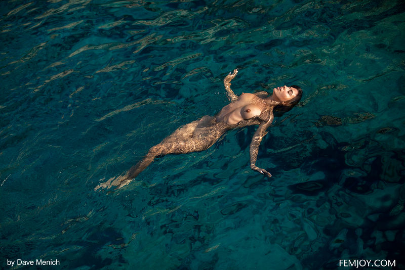 क्रिस्टल साफ पानी में नग्न सुंदर सुनहरे बालों की किशोरी - फ़ोटो 10 / 16