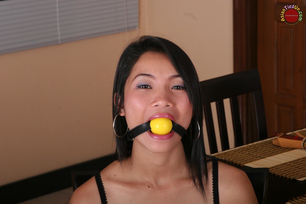 एशियाई लड़की को रसोई की कुर्सी से बाँध दिया गया और उसके मुंह में गेंद डाल दी गई - गैलरी जानकारी