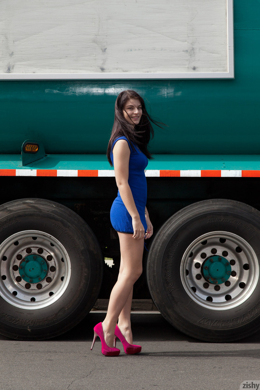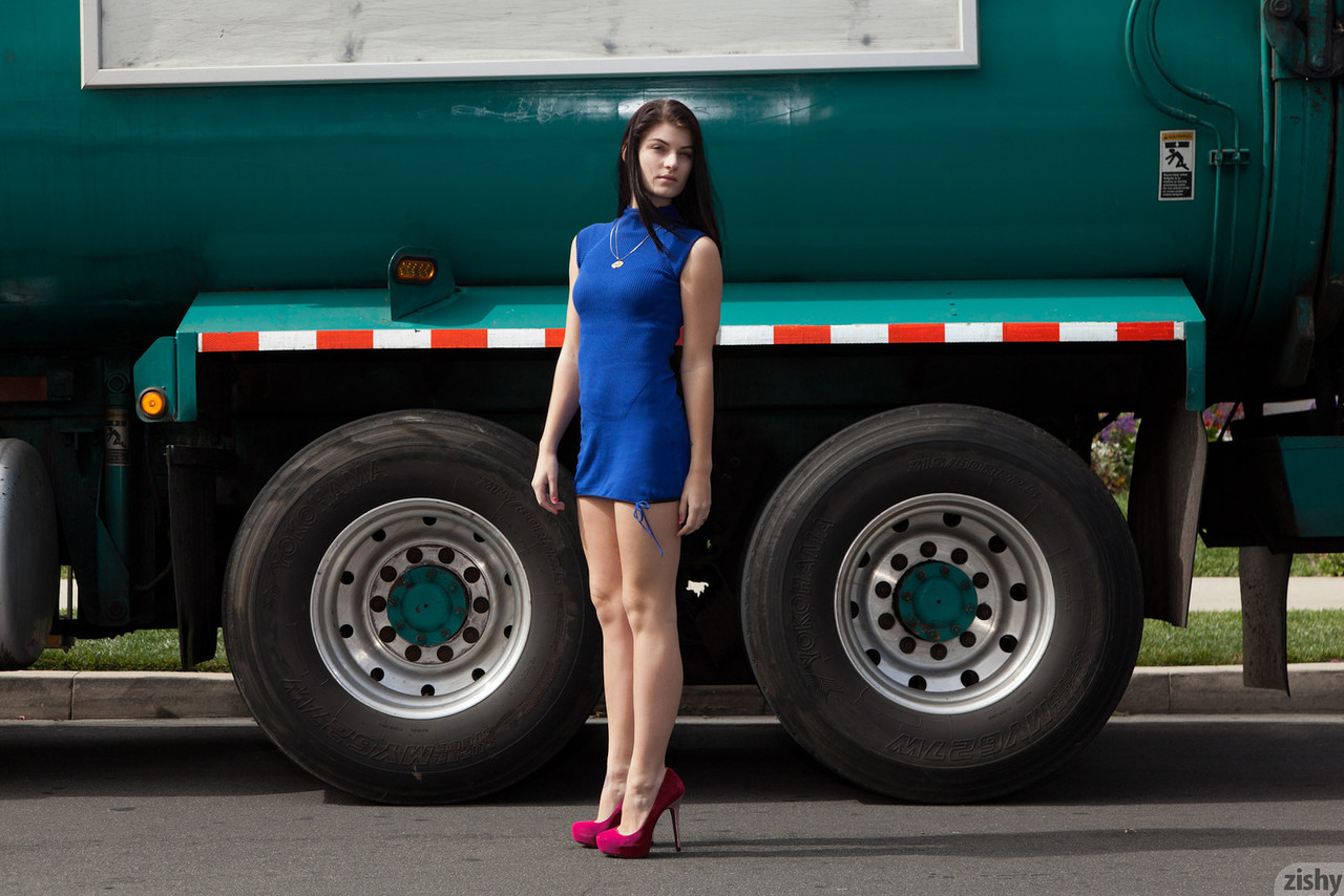 बिना पैंटी की किशोरी एलिसन ग्रे सेक्सी नीली ड्रेस और हील्स में सार्वजनिक रूप से पोज़ देती है - गैलरी जानकारी