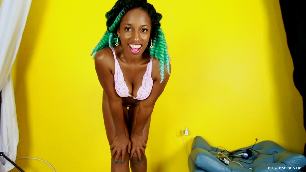 सेक्सी काली सम्राज्ञी जेस अपने प्राकृतिक स्तन और गोल चूतड़ को अंडरवियर में दिखाती है