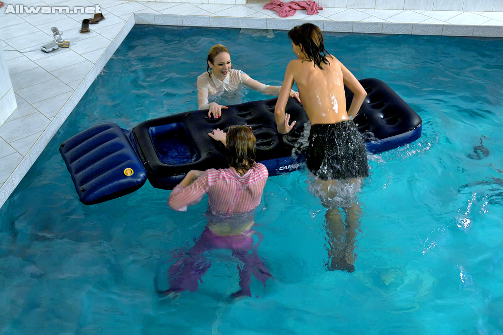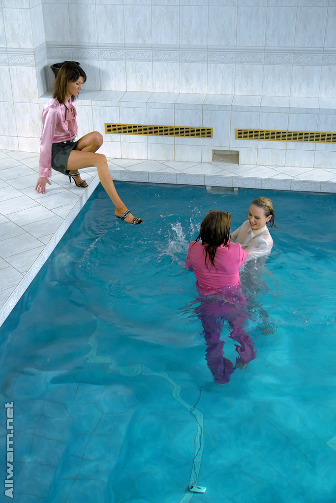 पूरी तरह से कपड़े पहने हुए फ़ेटिश महिलाएँ गीले पूल में मस्ती कर रही हैं - गैलरी जानकारी