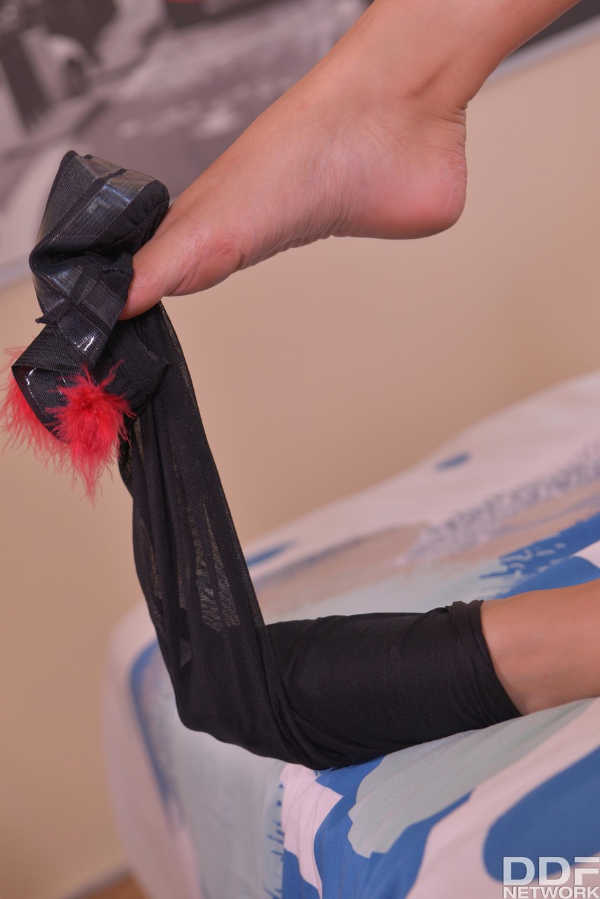 कोको डे माल ब्लैक स्टॉकिंग्स में अपनी गोल-मटोल गांड में उंगली करती है और योनि का क्लोज़-अप दिखाती है - गैलरी जानकारी