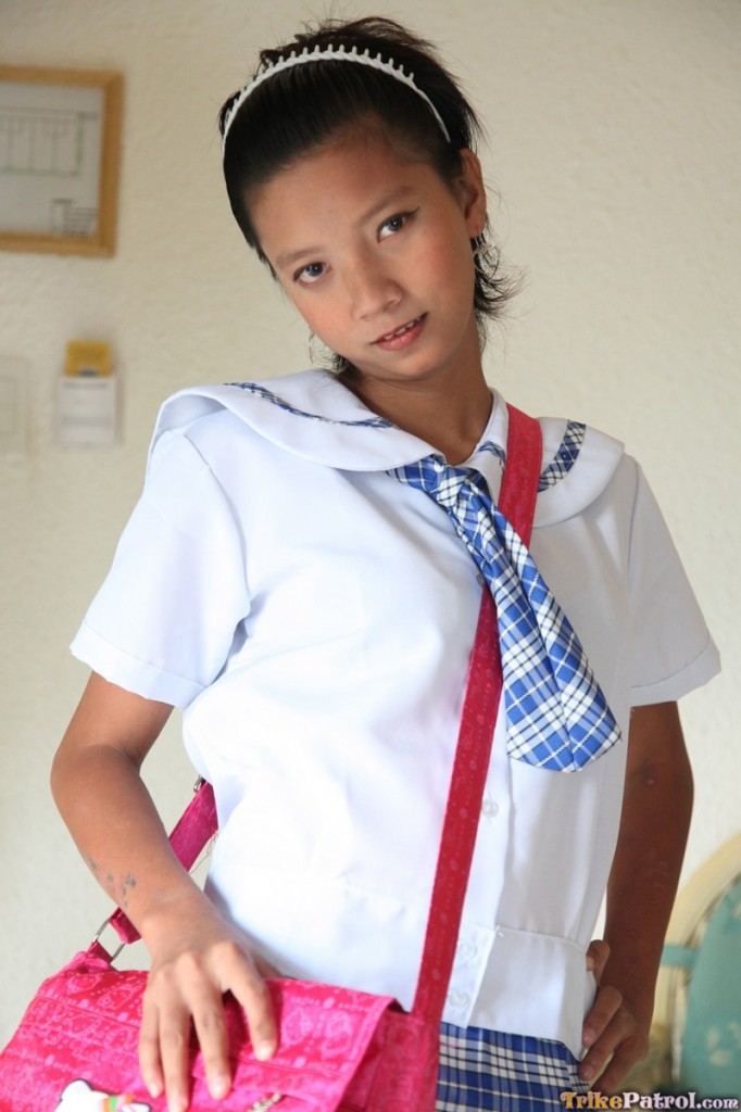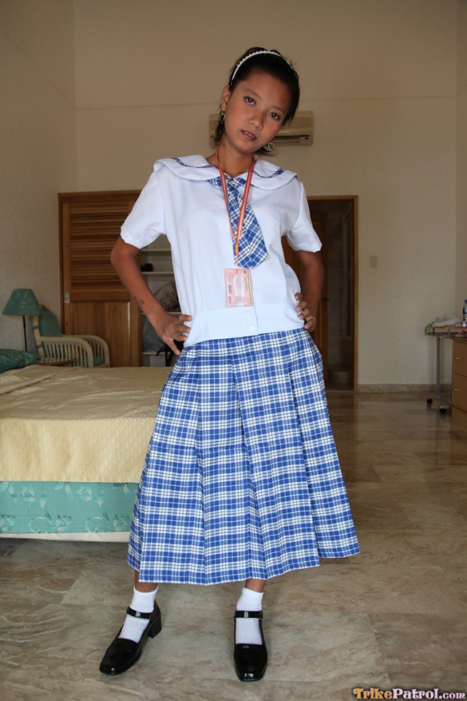 छोटी फिलिपिनो स्कूल गर्ल सैली यूनिफॉर्म में पैंटी और किशोर योनि दिखाती है - गैलरी जानकारी