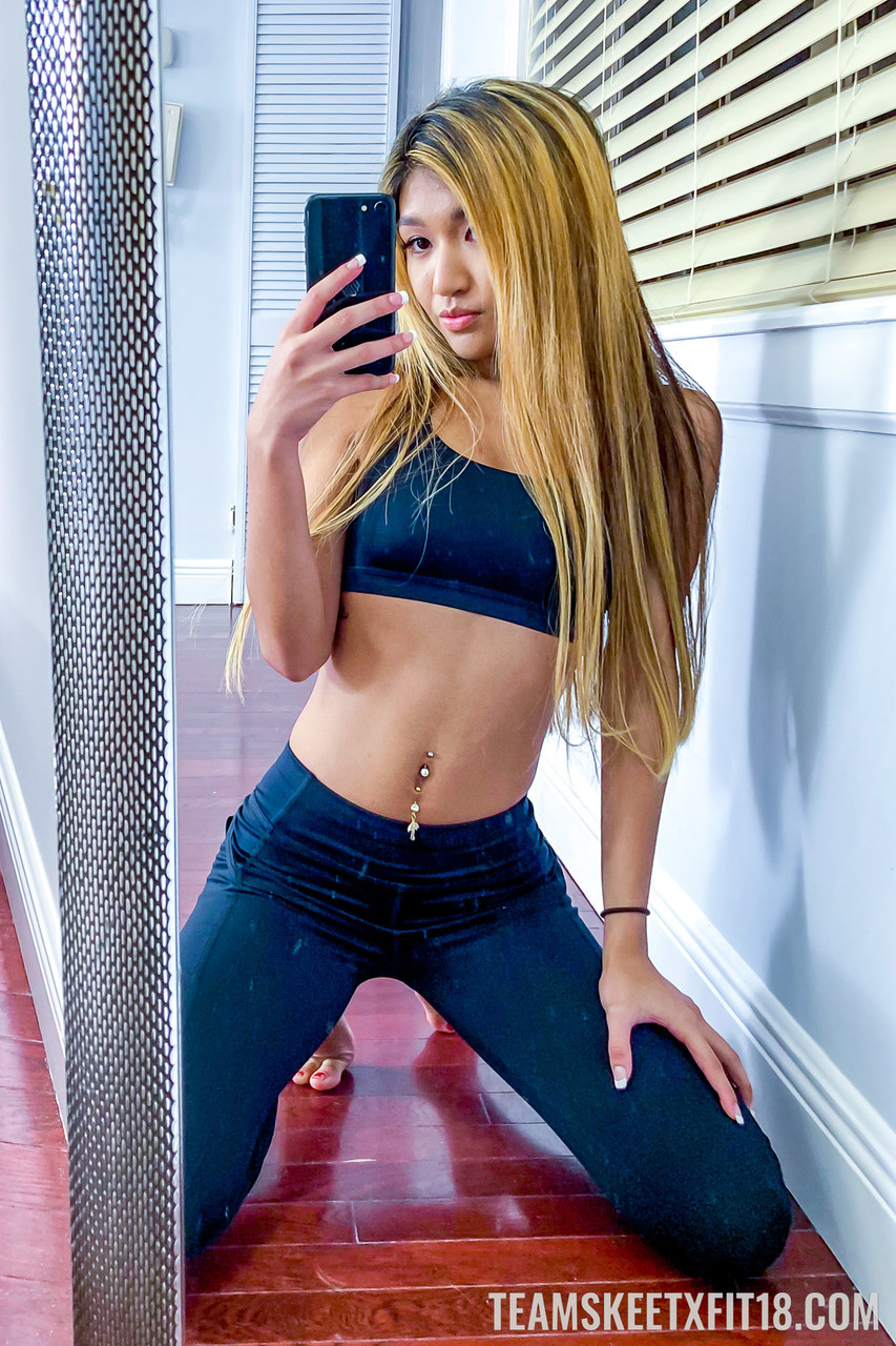 दुबली एशियाई किशोरी क्लारा ट्रिनिटी योगा पैंट उतारकर अपनी कूल्हों को प्रदर्शित करती है - गैलरी जानकारी