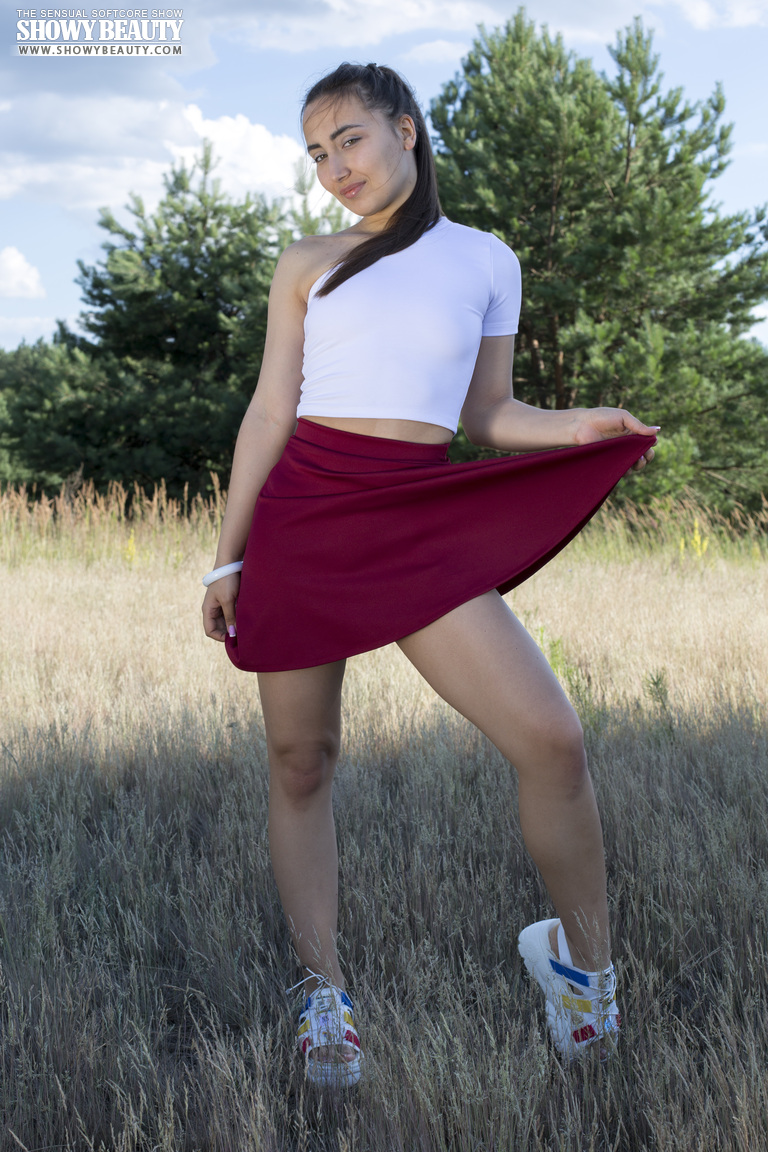 किशोर बेला एक खेत की कंबल पर नग्न हो जाती है, अपने छोटे स्तन, वैक्स वाली योनि और बड़े नितंबों को अपनी स्कर्ट के नीचे गर्म शौकिया आउटडोर शूट में दिखाती है।